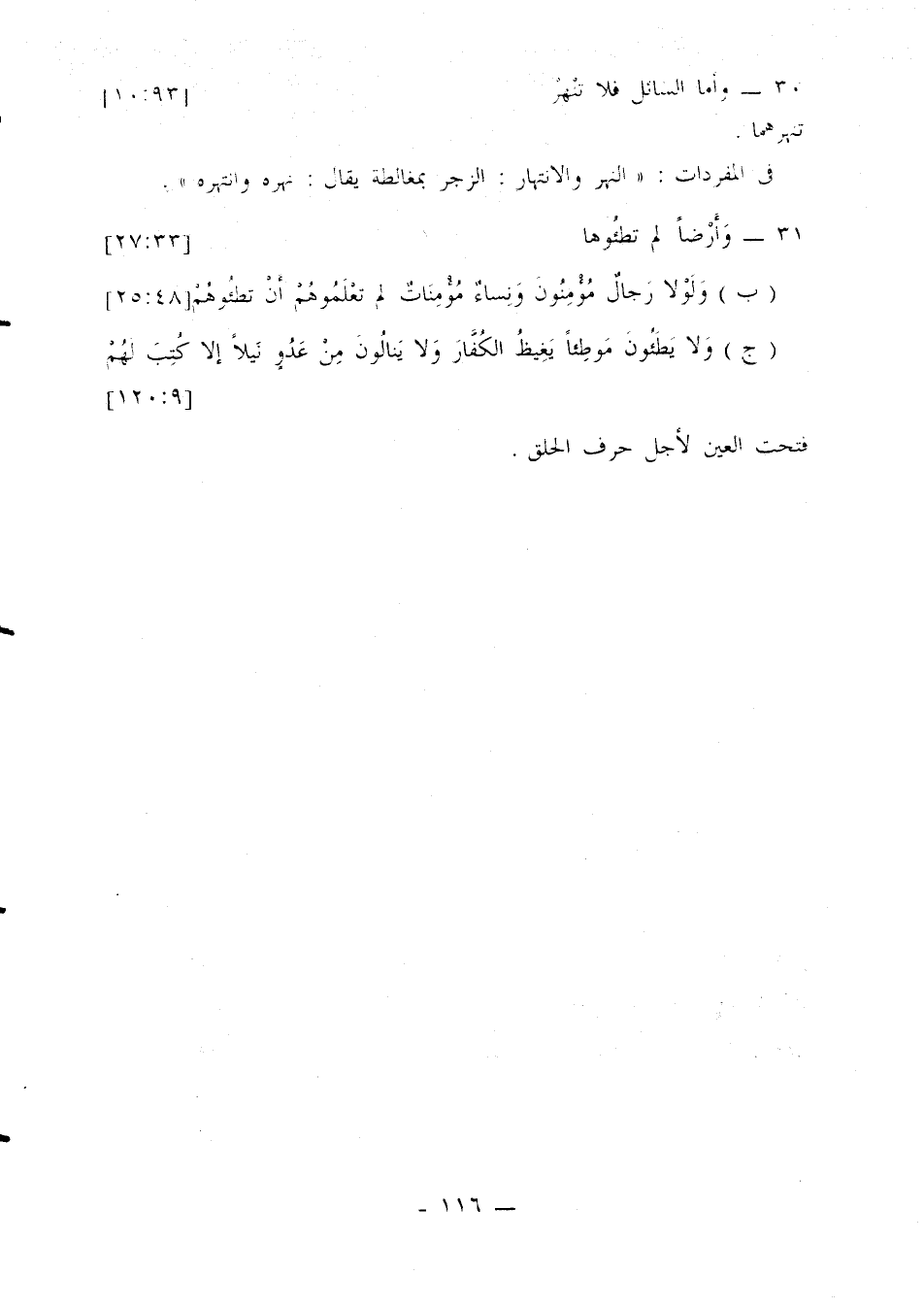ب- ولولا رجال مؤمنون ونساء مؤمنات لم تعلموهم أن تطئوهم [48: 25].