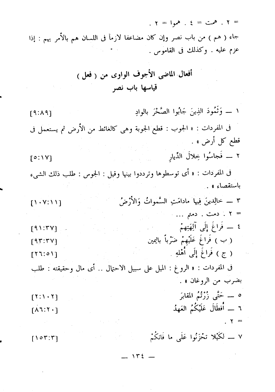 أفعال الماضي الأجوف الواوي من (فعل)