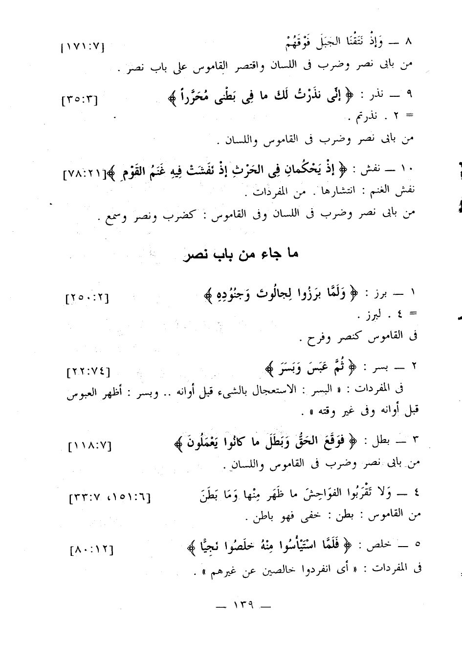 10 - نفش: {إذ يحكمان في الحرث إذ نفشت فيه غنم القوم} [21: 78].
