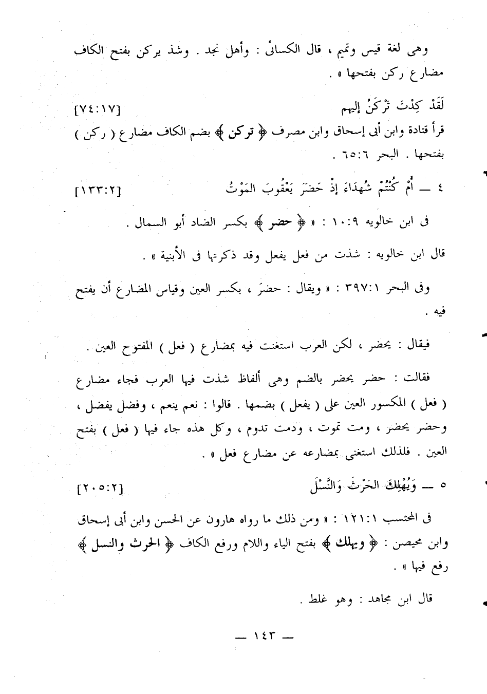 وفي البحر 1: 397: «ويقال: حضر، بكسر العين وقياس المضارع أن يفتح فيه.
