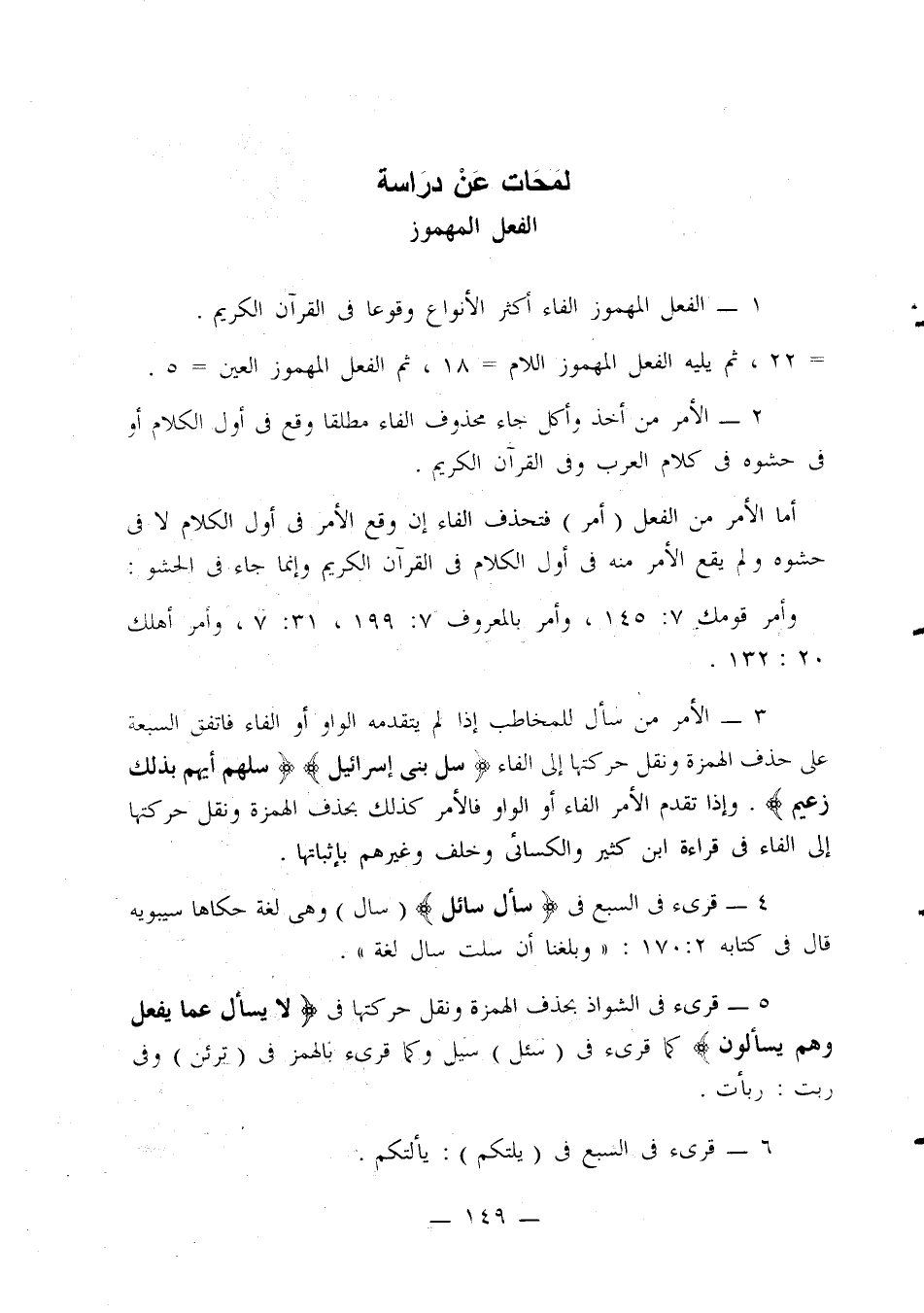 1 - الفعل المهموز الفاء أكثر الأنواع وقوعا في القرآن الكريم.