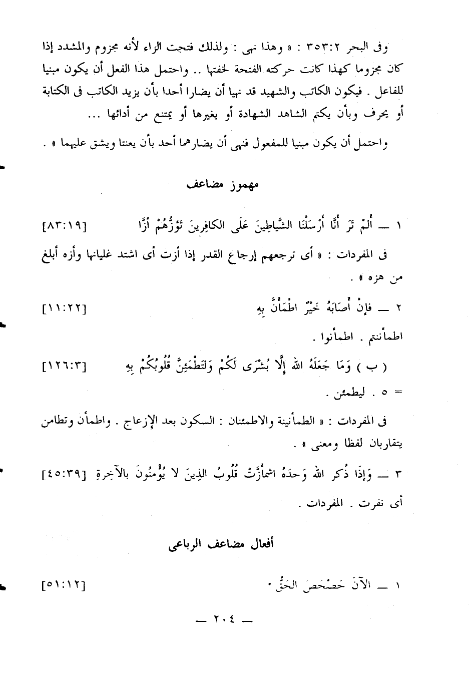 وفي البحر 2: 353: «وهذا نهي: ولذلك فتحت الراء لأنه مجزوم والمشدد إذا كان مجزوما كهذا كانت حركته الفتحة لخفتها ... واحتمل هذا الفعل أن يكون مبنيا للفاعل. فيكون الكاتب والشهيد قد نهيا أن يضارا أحدا بأن يزيد الكاتب في الكتابة أو يحرف وبأن يكتم الشاهد الشهادة أو يغيرها أو يمتنع من أدائها ...