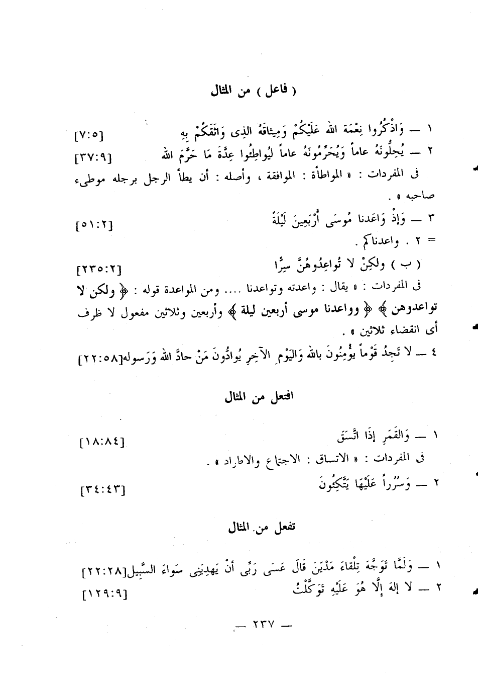 في المفردات: «يقال: واعدته وتواعدنا ... ومن المواعدة قوله: {ولكن لا تواعدوهن} {وواعدنا موسى أربعين ليلة} وأربعين وثلاثين مفعول لا ظرف أي انقضاء ثلاثين».