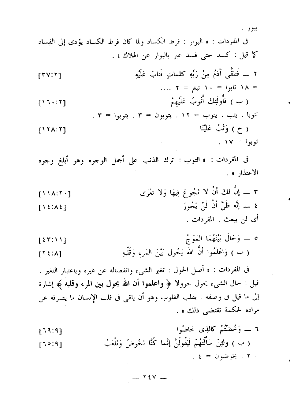 تتوبا. يتب. يتوب = 12. يتوبون = 3. يتوبوا = 3.