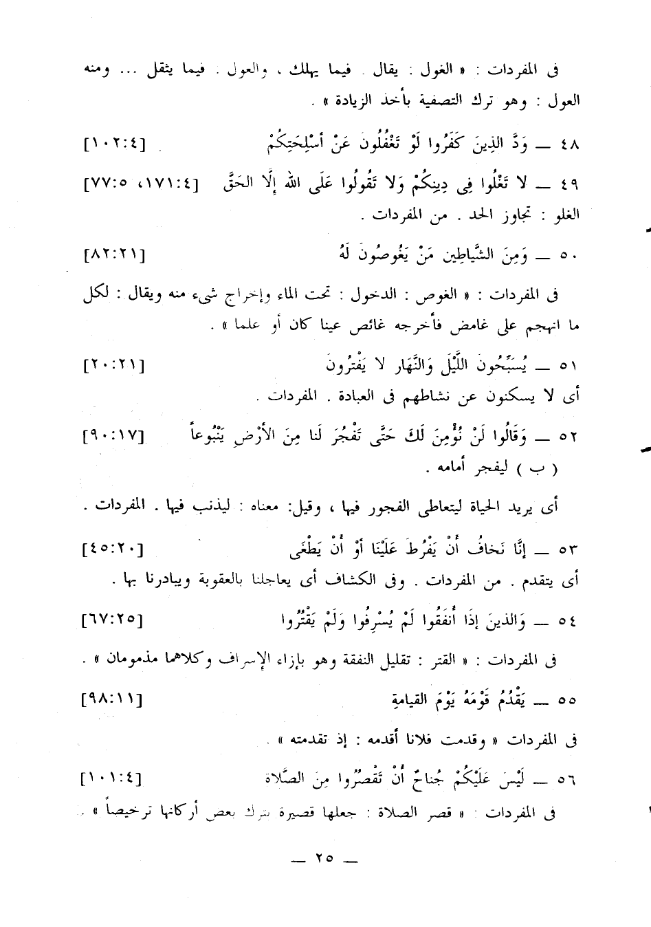 49 - {ولا تغلوا في دينكم ولا تقولوا على الله إلا الحق} [4: 171، 5: 77]. الغلو: تجاوز الحد، من المفردات.