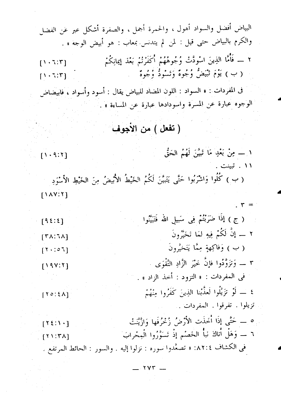 ب- كلوا واشربوا حتى يتبين لكم الخيط الأبيض من الخيط الأسود [2: 187].