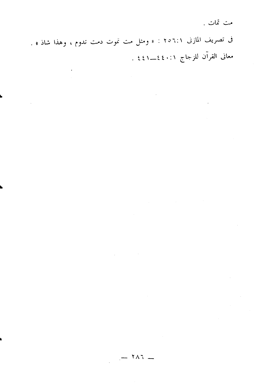 في تصريف المازني 1: 256: «ومثل مت تموت دمت تدوم، وهذا شاذ».