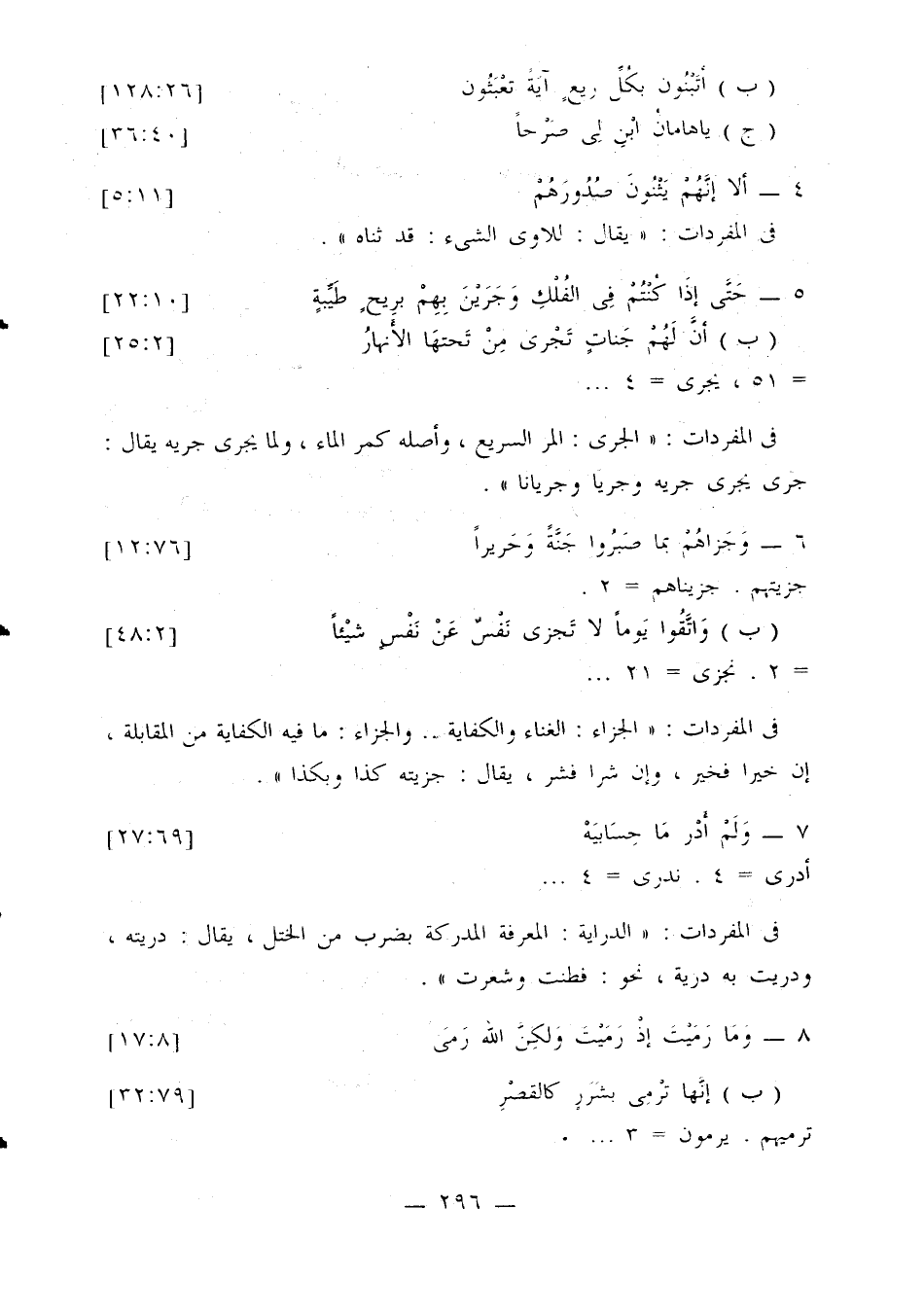 في المفردات: «الجزاء: الغناء والكفاية ... والجزاء: ما فيه الكفاية من المقابلة، إن خيرا فخير، وإن شرا فشر، يقال: جزيته كذا وبكذا».