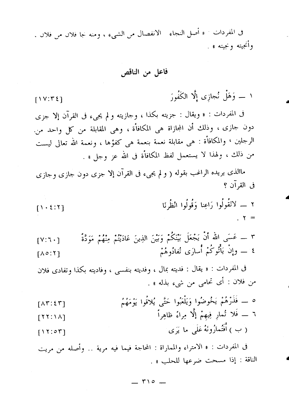 ما الذي يريده الراغب بقوله (ولم يجيء في القرآن إلا جزي دون جازي وجازي في القرآن؟