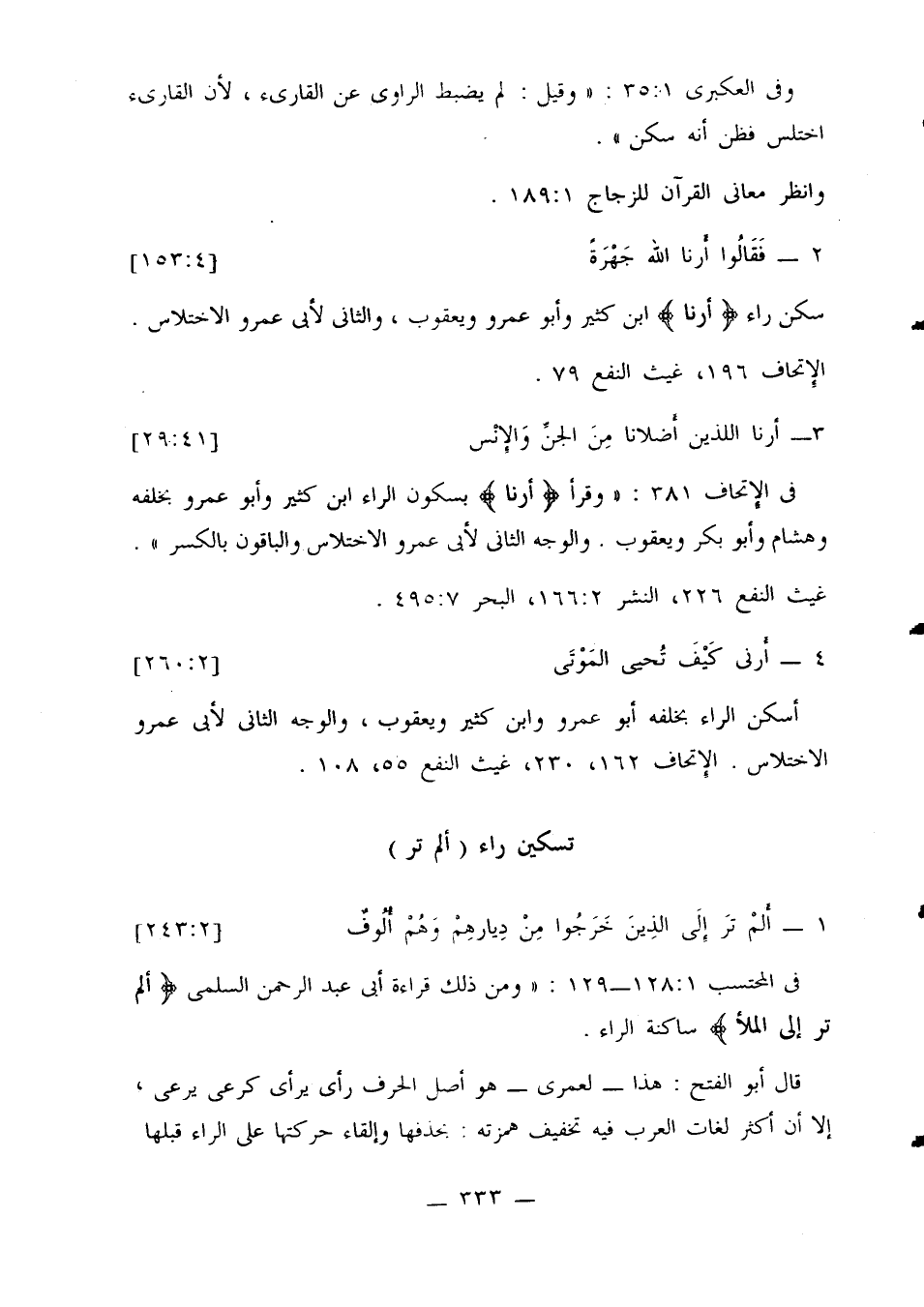 في المحتسب 1: 128 - 129: «ومن ذلك قراءة أبي عبد الرحمن السلمي {ألم تر إلى الملأ} ساكنة الراء.