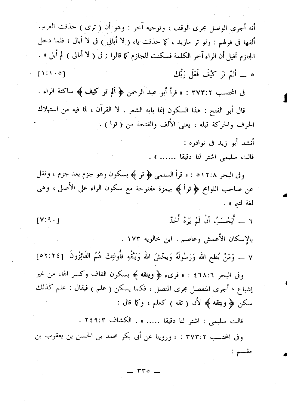 في المحتسب 2: 373: «قرأ أبو عبد الرحمن {ألم تر كيف} ساكنة الراء.