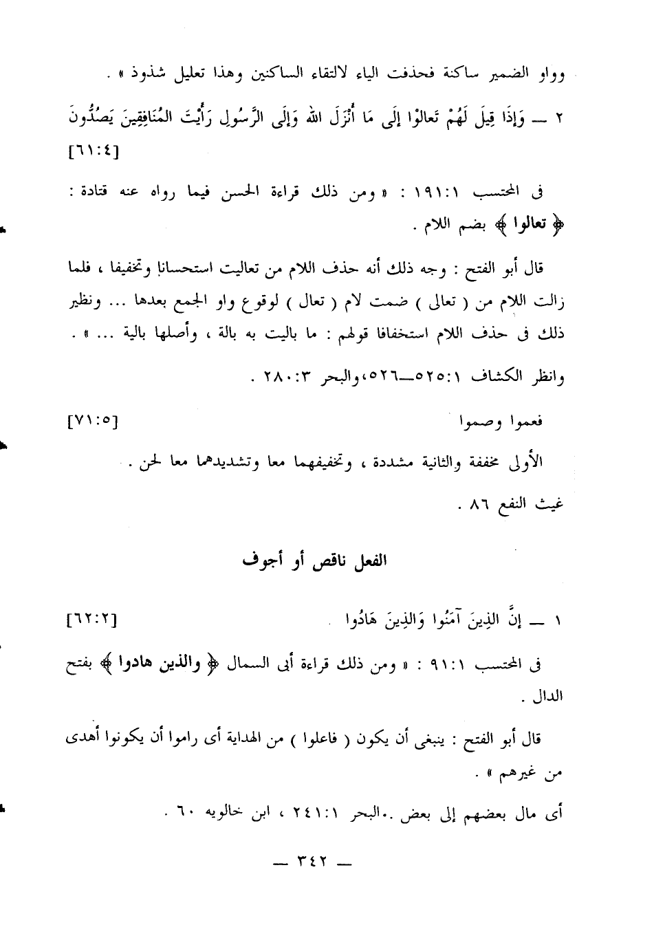 في المحتسب 1: 191: «ومن ذلك قراءة الحسن فيما رواه عنه قتادة: {تعالوا} بضم اللام.