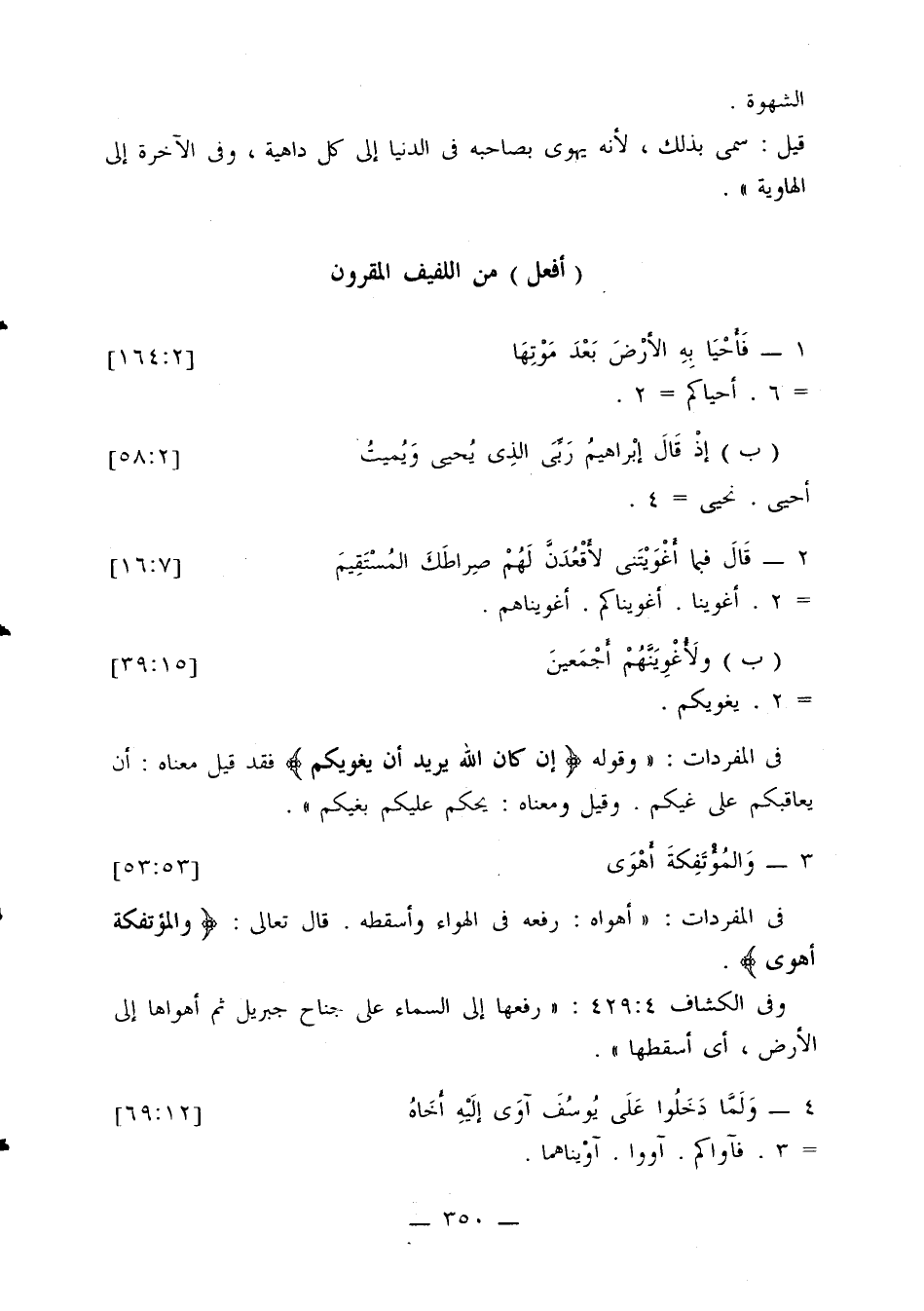 في المفردات: «أهاه: رفعه في الهواء وأسقطه. قال تعالى: {والمؤتفكة أهوى}.