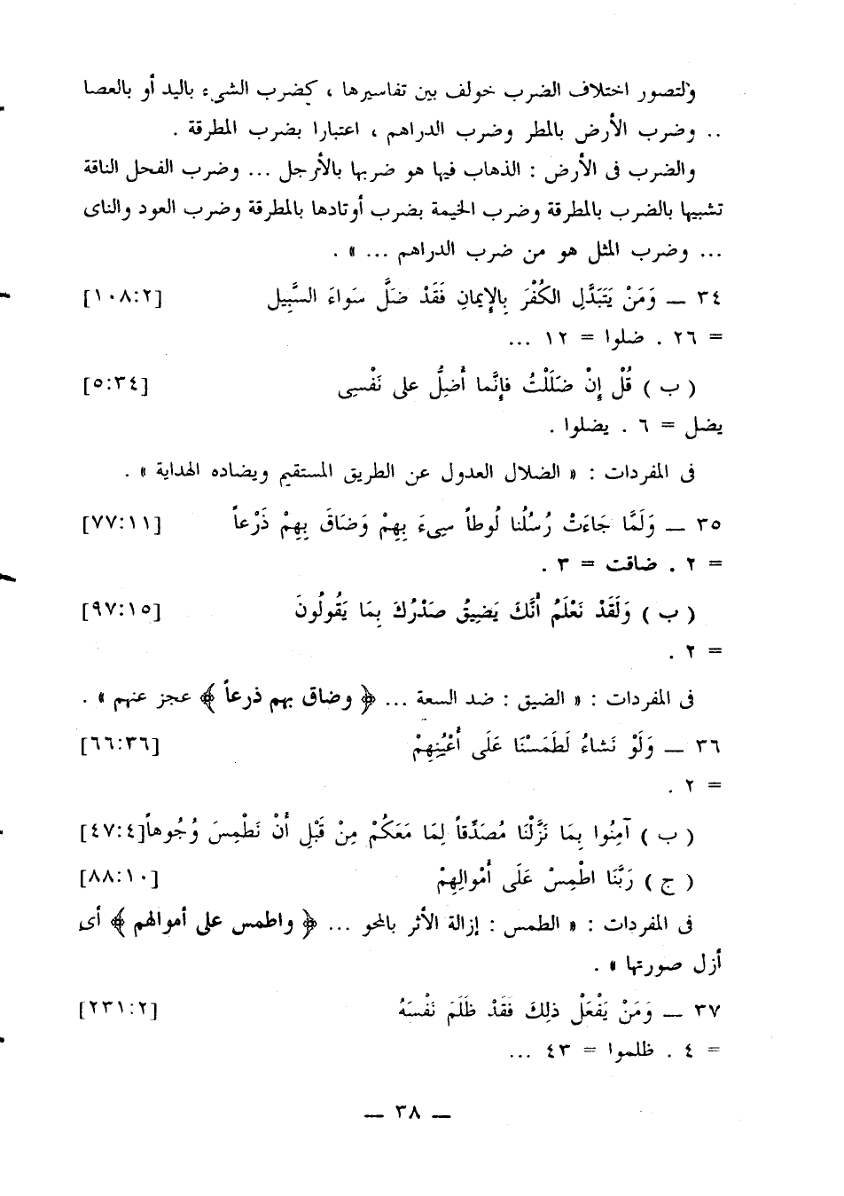 (ب) {قل إن ضللت فإنما أضل على نفسي} [34: 5]. يضل = 6، يضلوا.
