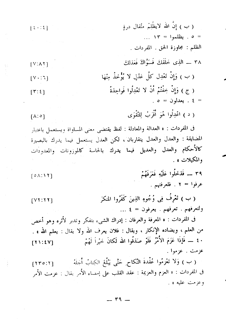 (ب) {إن الله لا يظلم مثقال ذرة} [4: 40]. =5، يظلموا= 13.