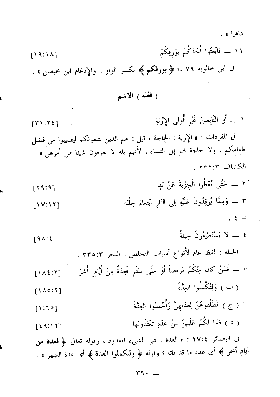 في البصائر 4: 27: «العدة: هي الشيء المعدود، وقوله تعالى {فعدة من أيام أخر} أي عدد ما قد فاته؛ وقوله {ولتكملوا العدة} أي عدة الشهر».