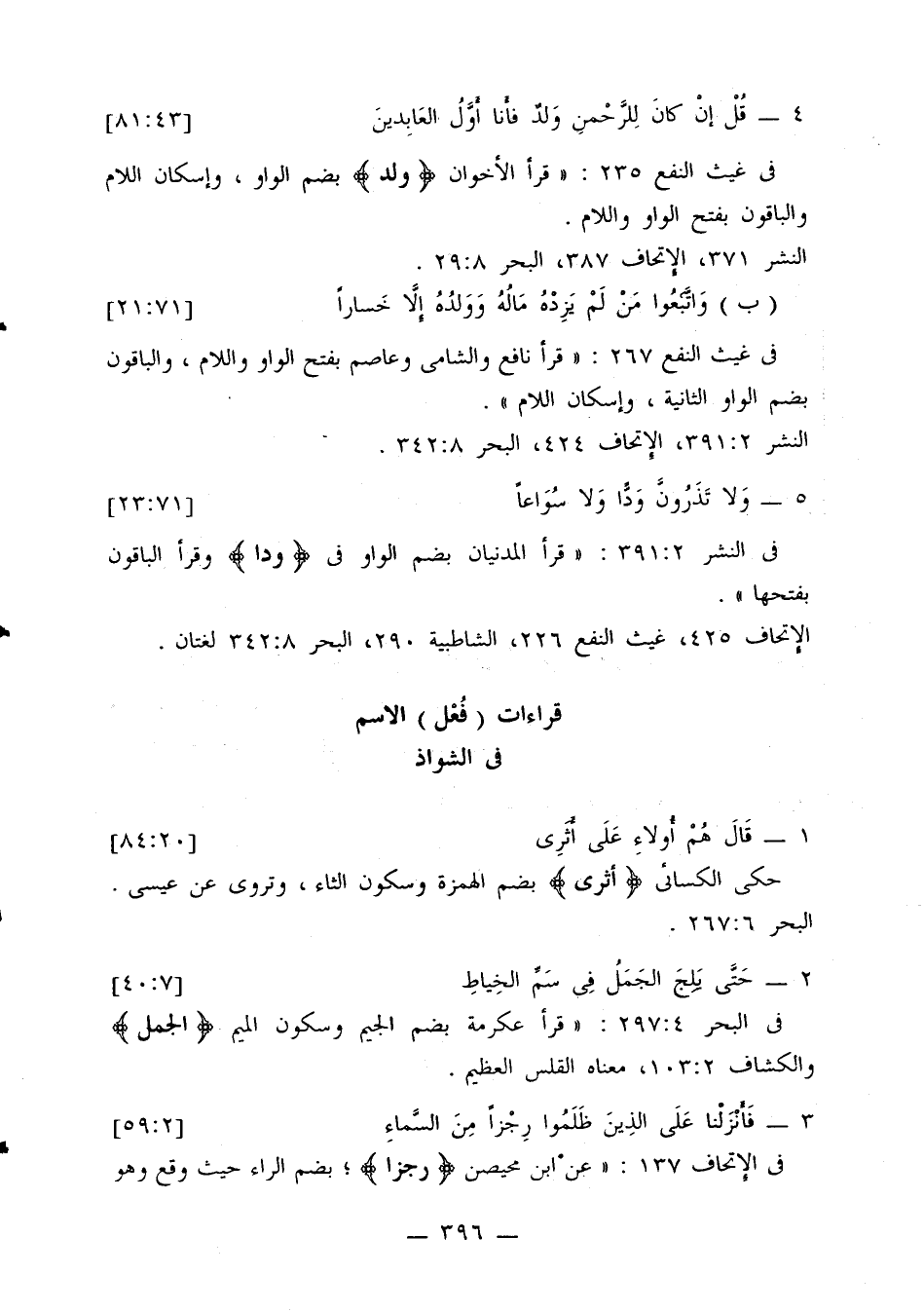 في غيث النفع 235: «قرأ الأخوان {ولد} بضم الواو، وإسكان اللام والباقون بفتح الواو واللام».