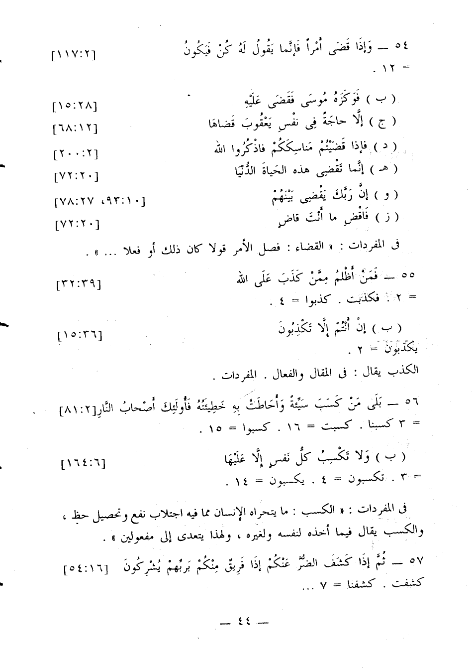 (ب) {ولا تكسب كل نفس إلا عليها} [6: 164]. =3، تكسبون= 4، يكسبون= 14.