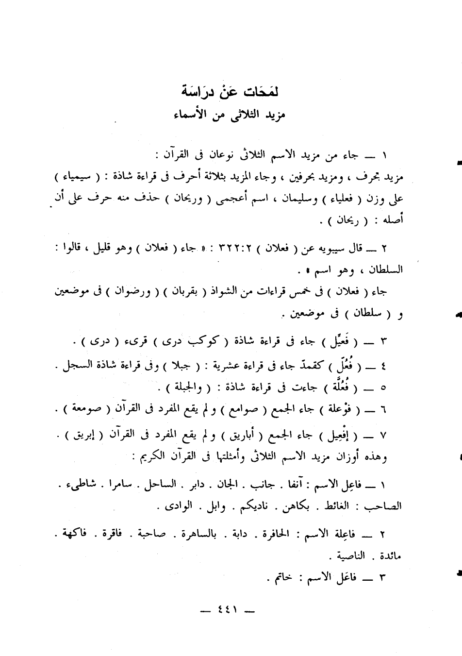 2 - قال سيبويه عن (فعلان) 2: 322: «جاء (فعلان) وهو قليل، قالوا: السلطان، وهو اسم».