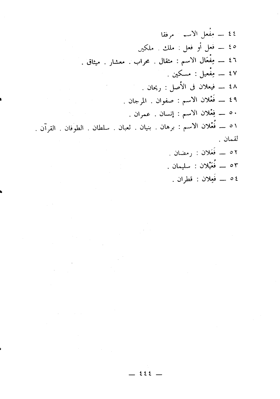 51 - فعلان الاسم: برهان. بنيان. ثعبان. سلطان. الطوفان. القرآن. لقمان.
