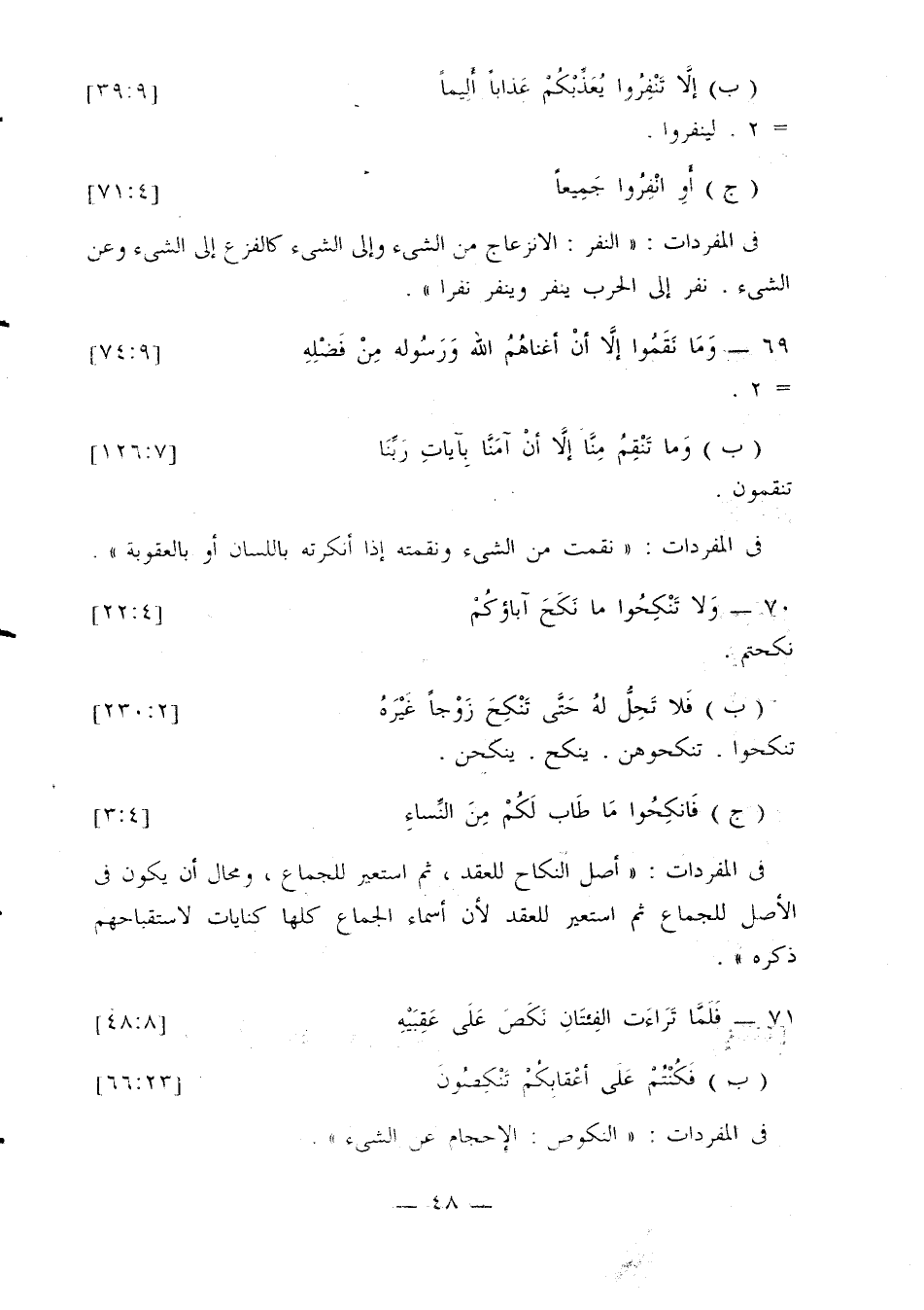 70 - {ولا تنكحوا ما نكح آباؤكم} [4: 22]. نكحتم.
