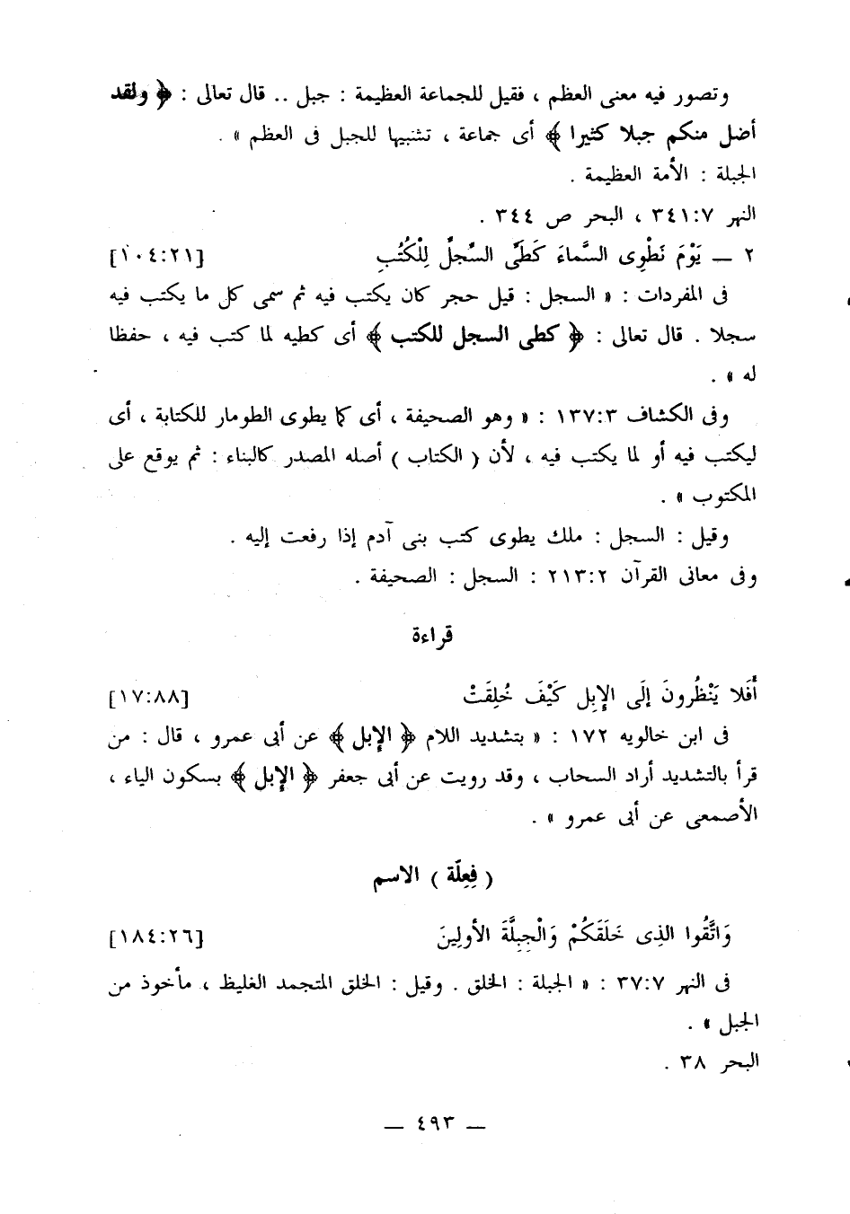 في ابن خالويه 172: «بتشديد اللام {الإبل} عن أبي عمرو، قال: من قرأ بالتشديد أراد السحاب، وقد رويت عن أبي جعفر {الإبل} بسكون الياء، الأصمعي عن أبي عمرو».