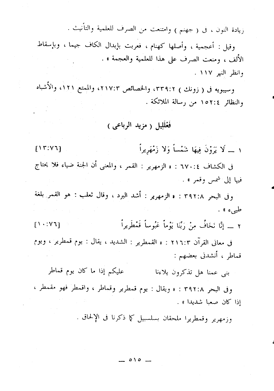 وزمهرير وقمطريرا ملحقان بسلسبيل كما ذكرنا في الإلحاق.