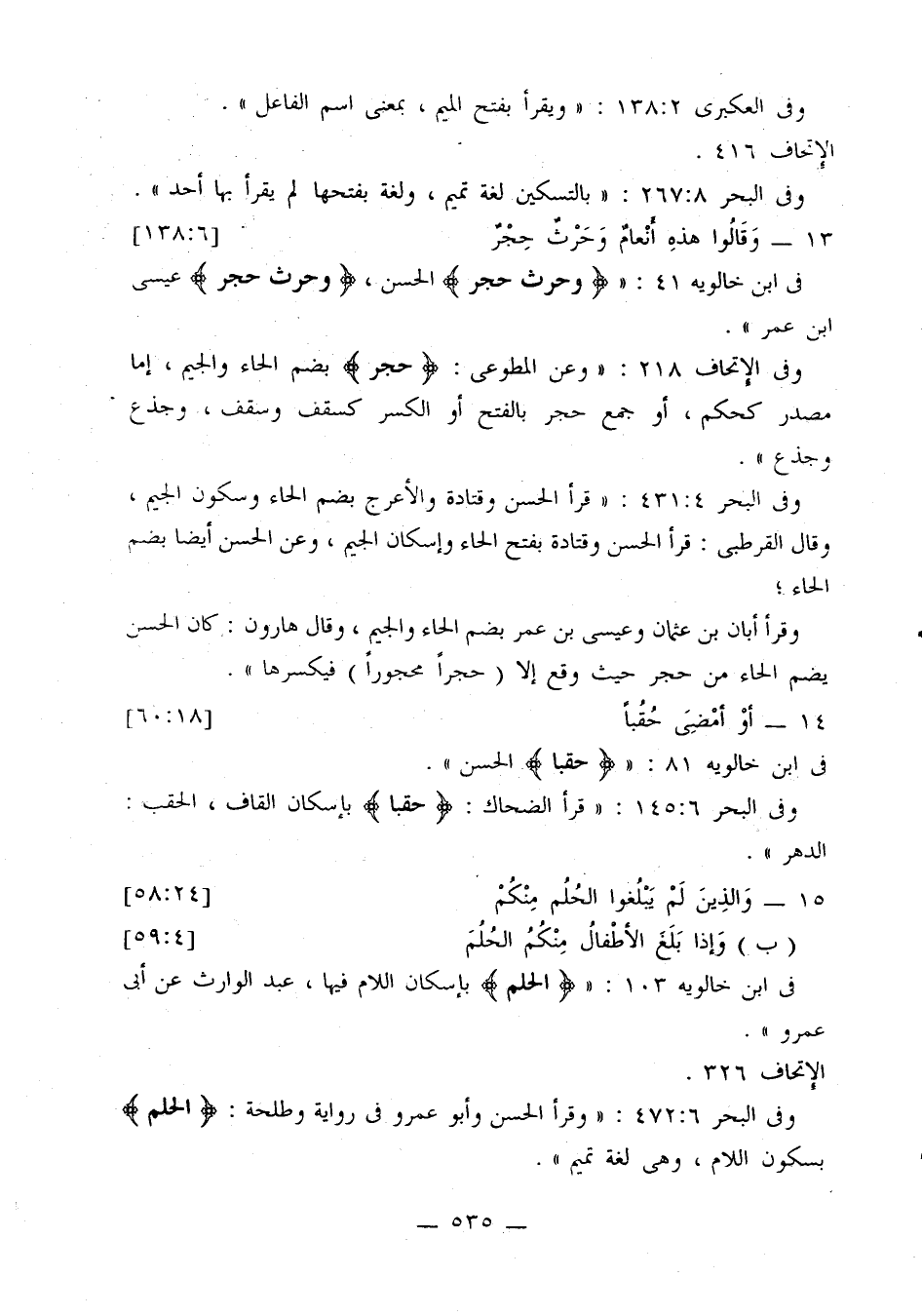 في ابن خالويه 41: «{وحرث حجر} الحسن، {وحرث حجر} عيسى بن عمر».