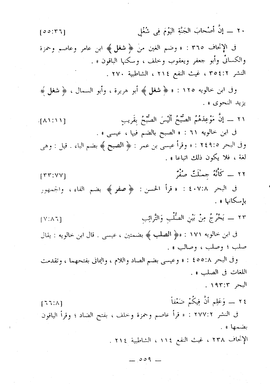 في البحر 8: 407: «قرأ الحسن: {صفر} بضم الفاء، والجمهور بإسكانها».