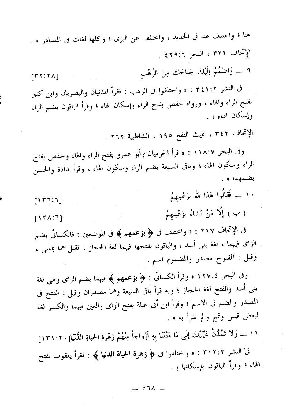 في النشر 2: 322: «واختلفوا في {زهرة الحياة الدنيا}: فقرأ يعقوب بفتح الهاء؛ وقرأ الباقون بإسكانها».