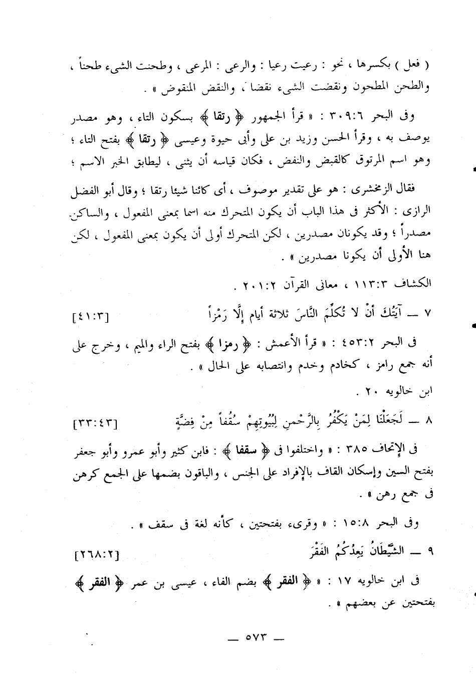 في ابن خالويه 17: «{الفقر} بضم الفاء، عيسى بن عمر {الفقر} بفتحتين عن بعضهم».