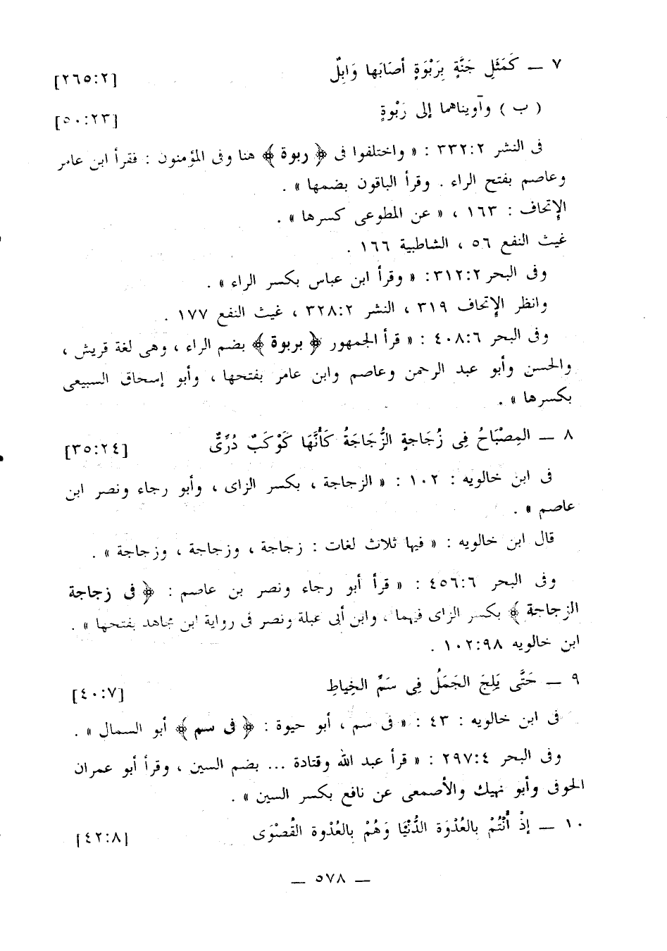 وفي البحر 6: 456: «قرأ أبو رجاء ونصر بن عاصم: {في زجاجة الزجاجة} بكسر الزاي فيهما، وابن أبي عبلة ونصر في رواية ابن مجاهد بفتحها». ابن خالويه 98: 102.