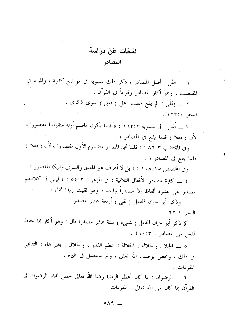 4 - كثرة مصادر الأفعال الثلاثية: في المزهر: 2: 54: «ليس في كلامهم مصدر على عشرة ألفاظ إلا مصدرا واحد، وهو لقيت زيدا لقاء».