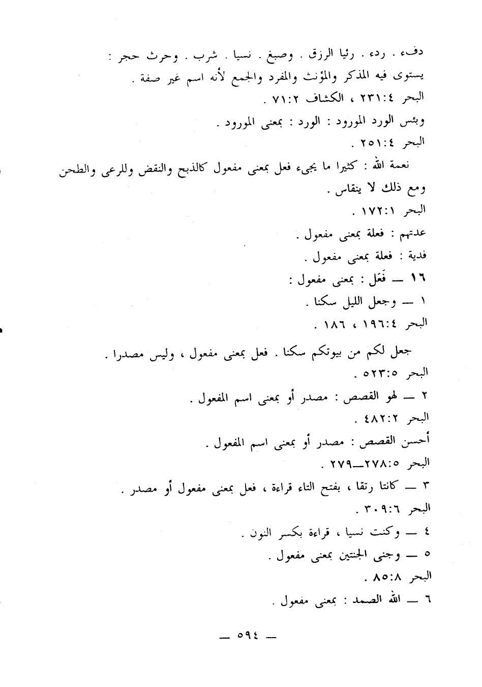نعمة الله: كثيرًا ما يجيء فعل بمعنى مفعول كالذبح والنقض وللرعى والطحن ومع ذلك لا ينقاس.