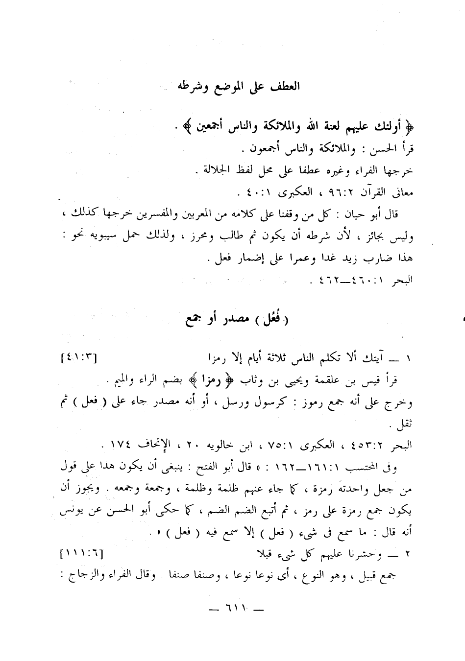 قال أبو حيان: كل من وقفنا على كلامه من المعربين والمفسرين خرجها كذلك، وليس بجائز، لأن شرطه أن يكون ثم طالب ومحرز، ولذلك حمل سيبويه نحو: هذا ضارب زيد غدا وعمرا على إضمار فعل.
