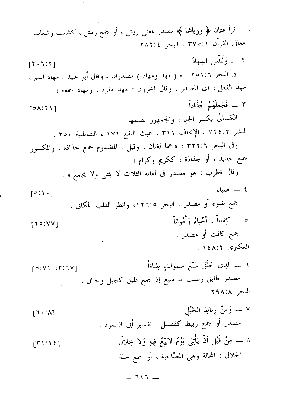 جمع ضوء أو مصدر. البحر 5: 126، وانظر القلب المكاني.
