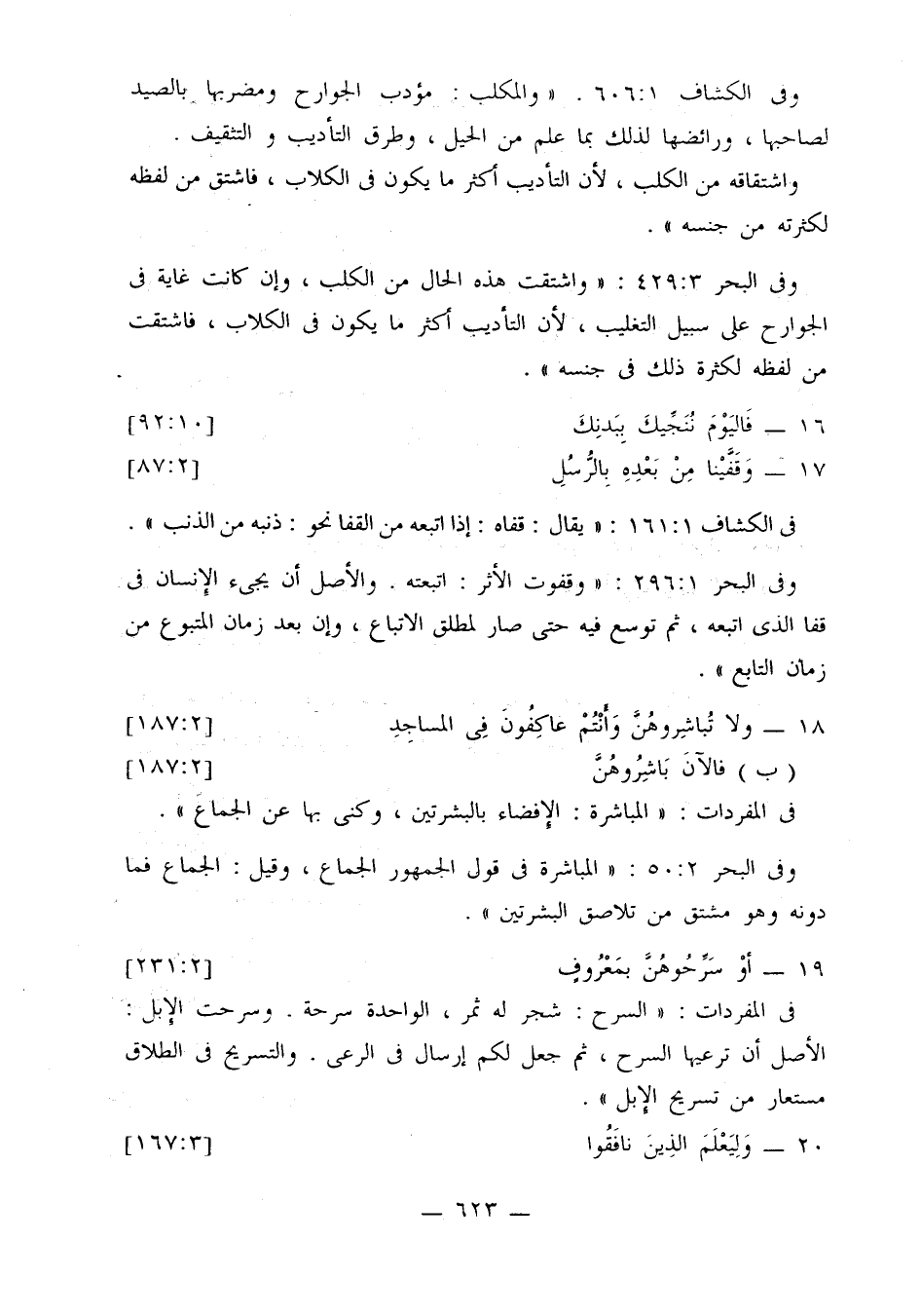 وفي البحر 3: 429: «واشتقت هذه الحال من الكلب، وإن كانت غاية في الجوارح على سبيل التغليب، لأن التأديب أكثر ما يكون في الكلاب، فاشتقت من لفظه لكثرة ذلك في جنسه».