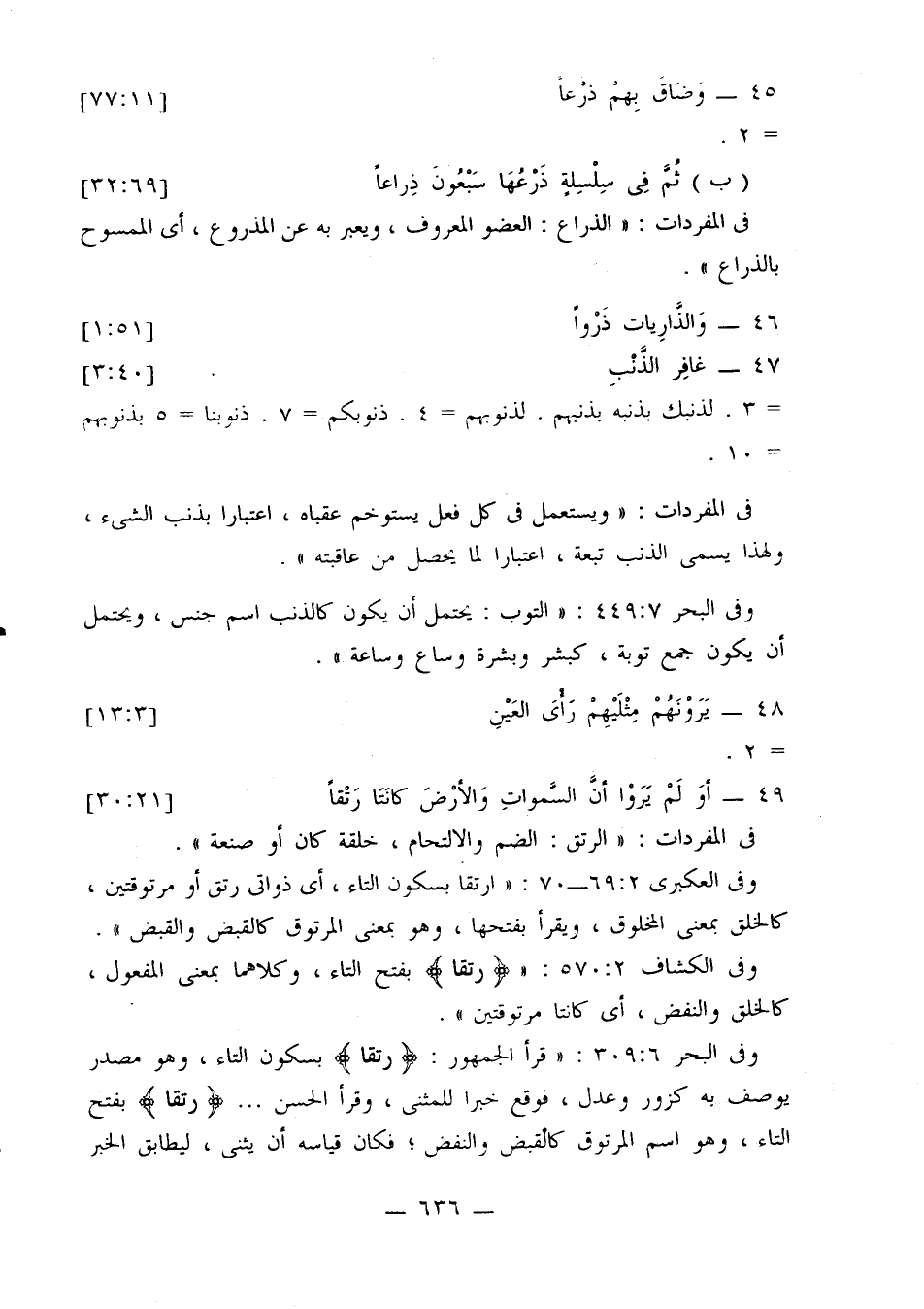 وفي العكبري 2: 69 - 70: «ارتقا بسكون التاء، أي ذواتي رتق أو مرتوقتين، كالخلق بمعنى المخلوق، ويقرأ بفتحها، وهو بمعنى المرتوق كالقبض والقبض».