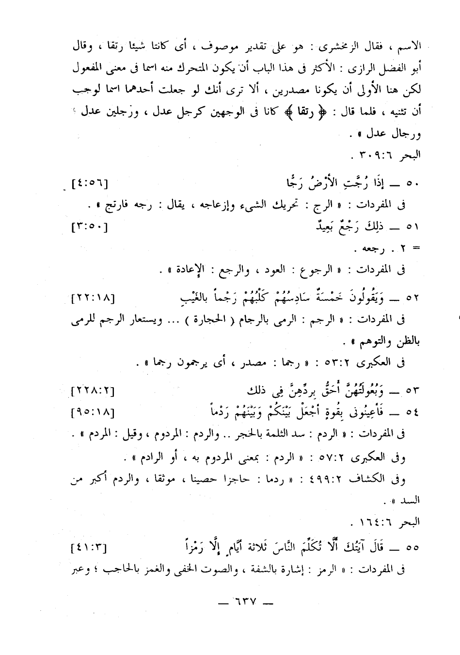 وفي العكبري 2: 57: «الردم: بمعنى المردوم به، أو الرادم».