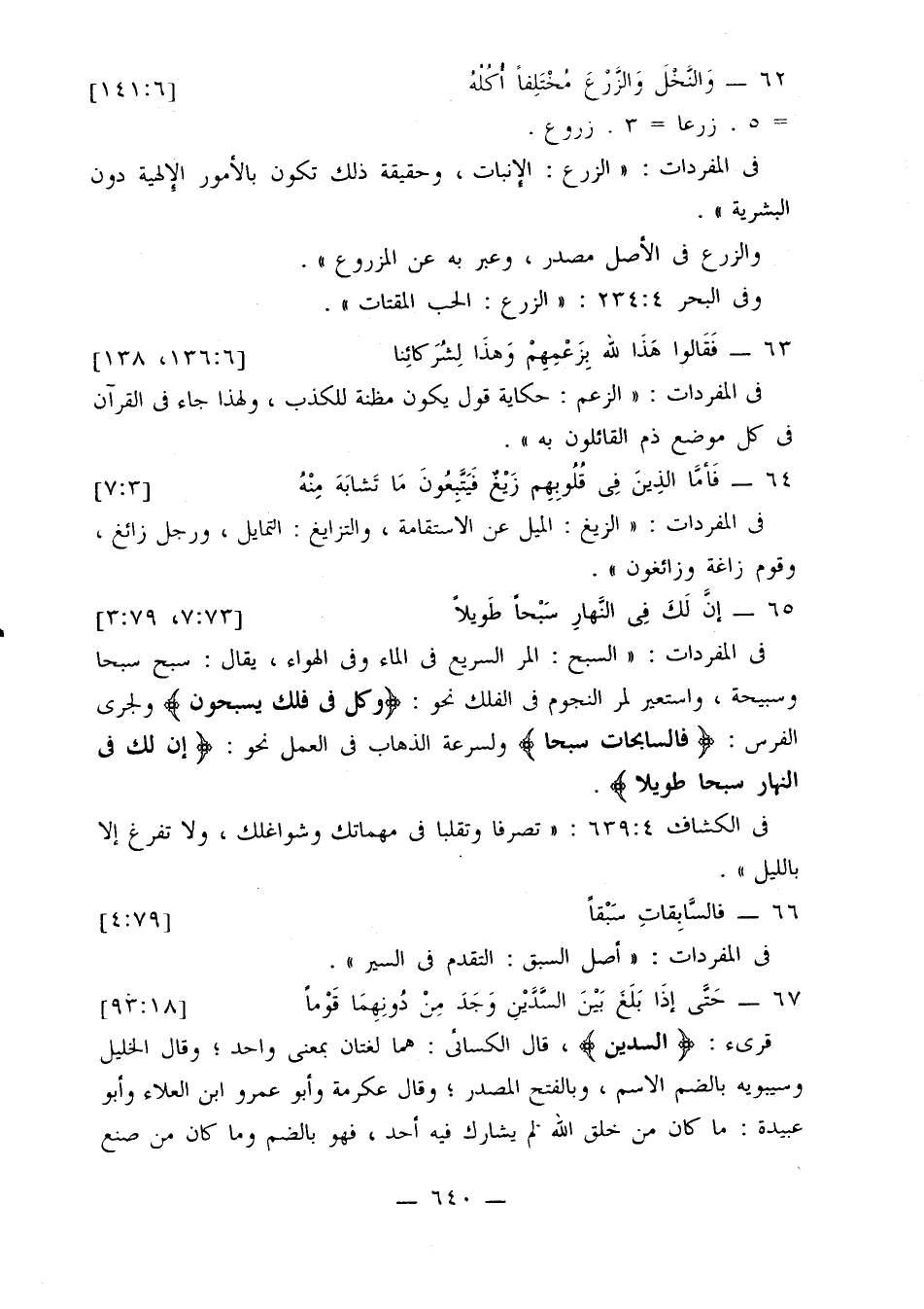 في المفردات: «السبح: المر السريع في الماء وفي الهواء، يقال: سبح سبحا وسبيحة، واستعير لمر النجوم في الفلك نحو: {وكل في فلك يسبحون} ولجري الفرس: {فالسابحات سبحا} ولسرعة الذهاب في العمل نحو: {إن لك في النهار سبحا طويلا}».