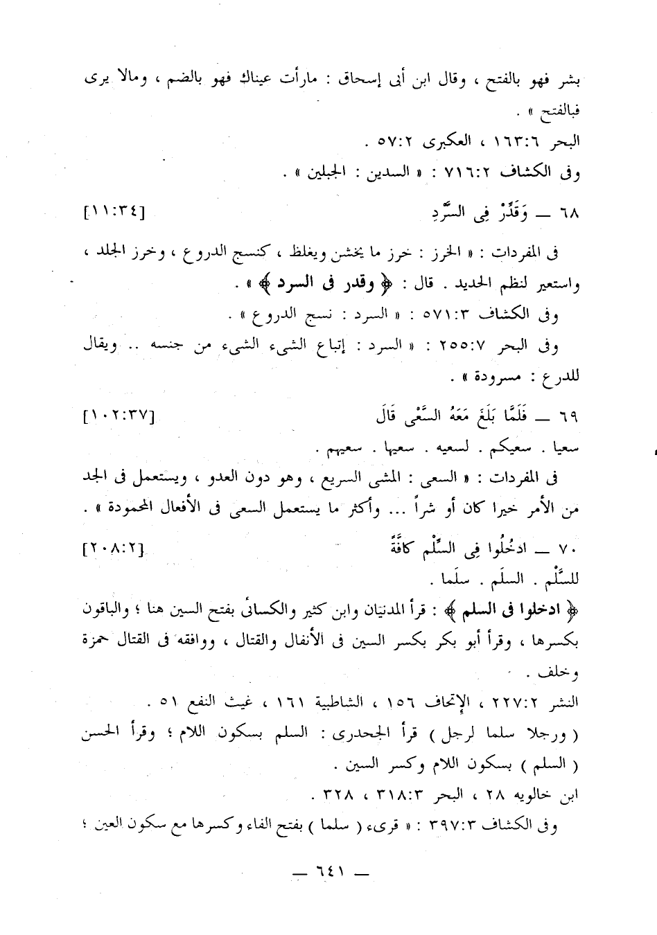 وفي الكشاف 3: 397: «قرئ (سلما) بفتح الفاء وكسرها مع سكون العين؛