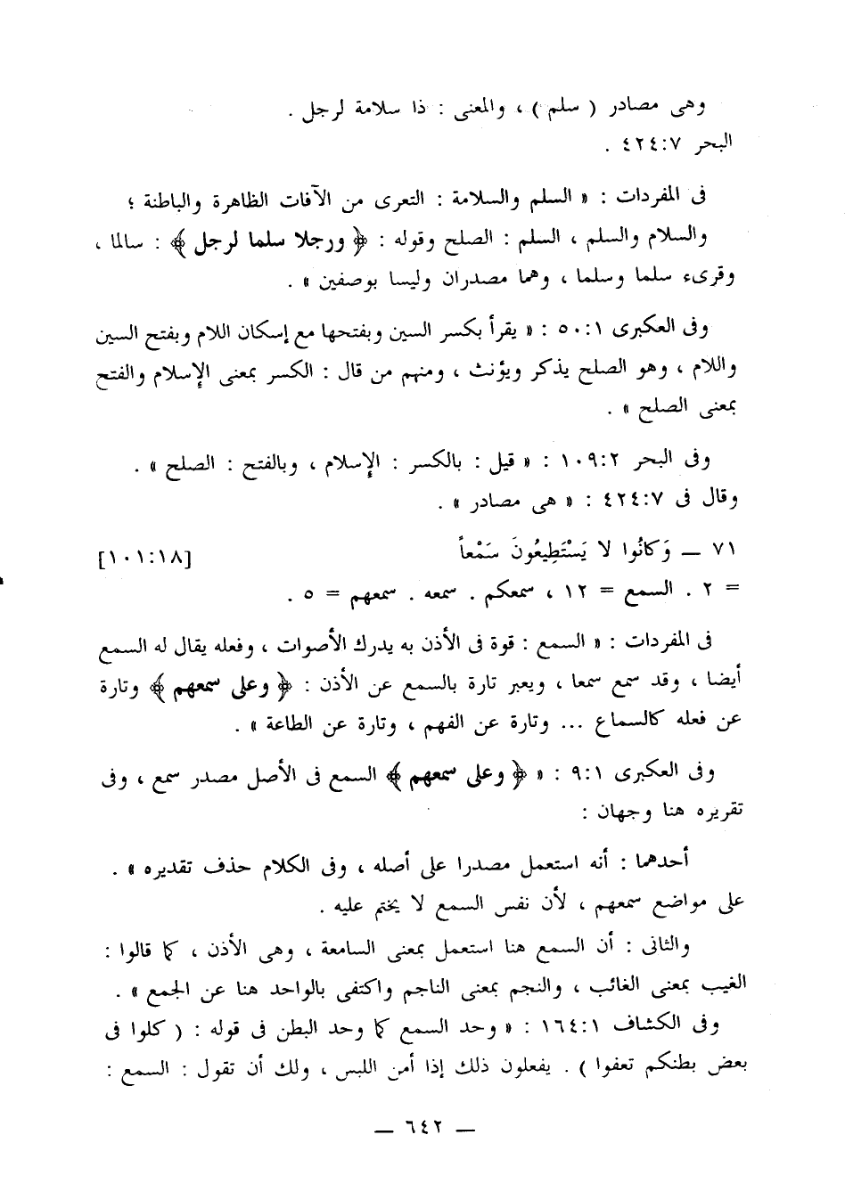 وفي العكبري 1: 50: «يقرأ بكسر السين وبفتحها مع إسكان اللام وبفتح السين واللام، وهو الصلح يذكر ويؤنث، ومنه من قال: الكسر بمعنى الإسلام والفتح بمعنى الصلح».