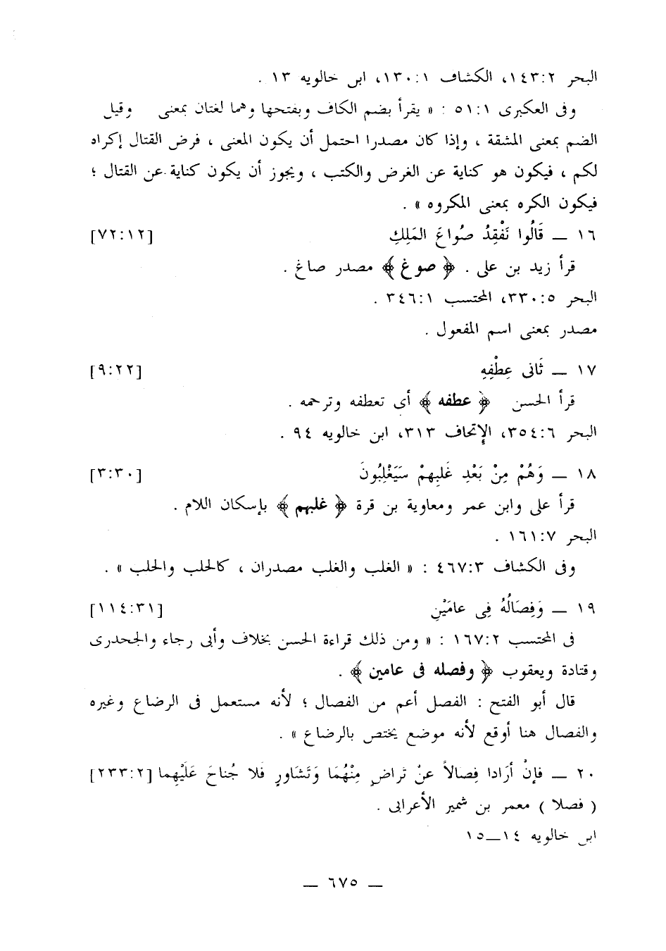البحر 2: 143، الكشاف 1: 130، ابن خالويه 13.