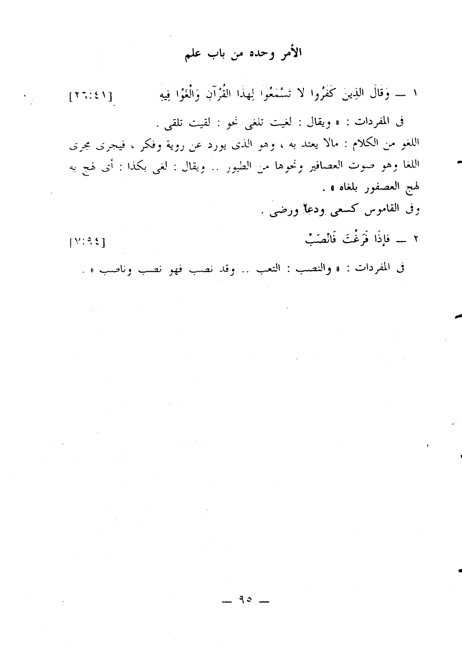 1 - وقال الذين كفروا لا تسمعوا لهذا القرآن والغوا فيه [41: 26].
