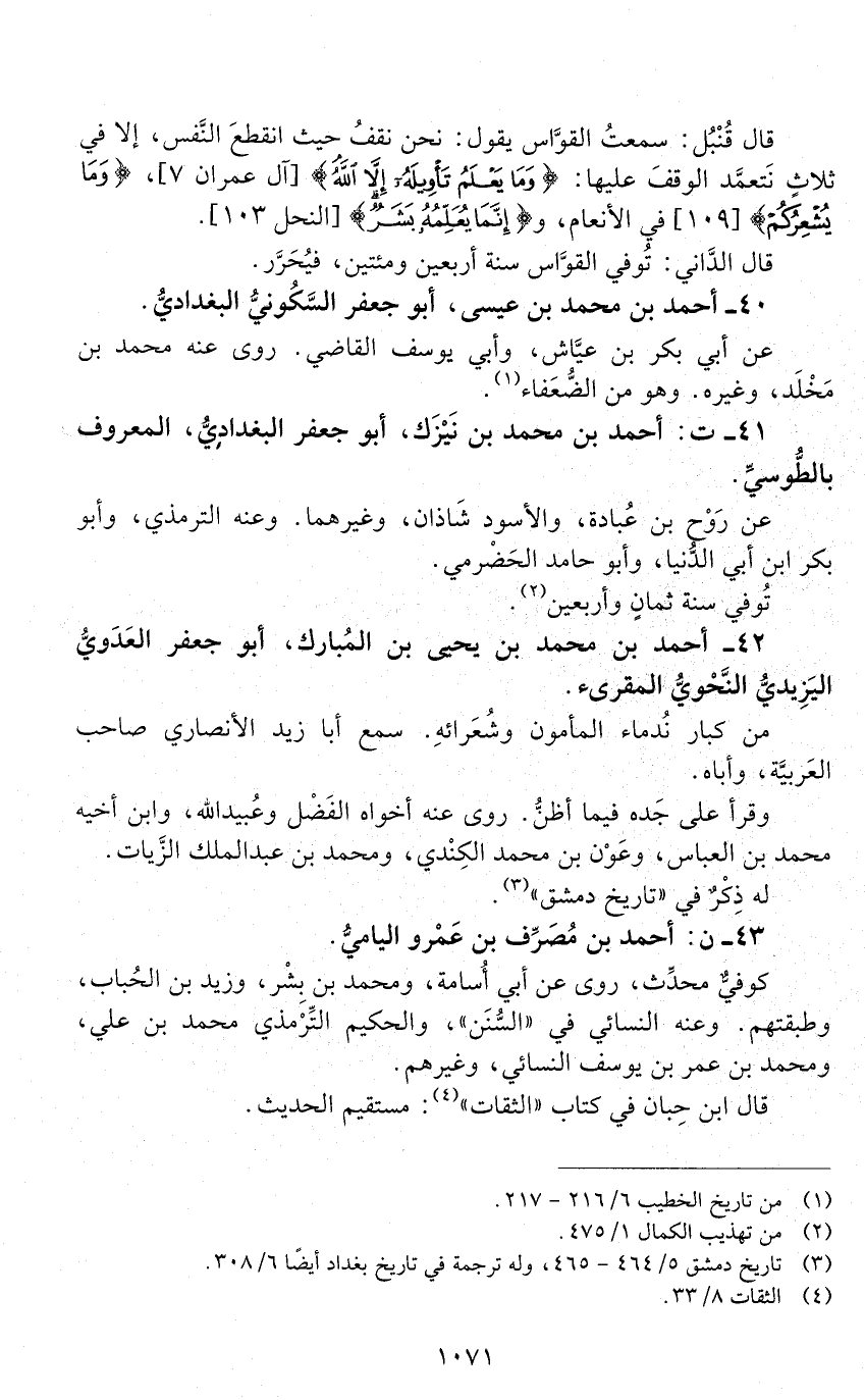 41 - ت: أحمد بن محمد بن نَيْزَك، أبو جعفر البَغْداديُّ المعروف بالطُّوسيِّ. [الوفاة: 241 - 250 ه]