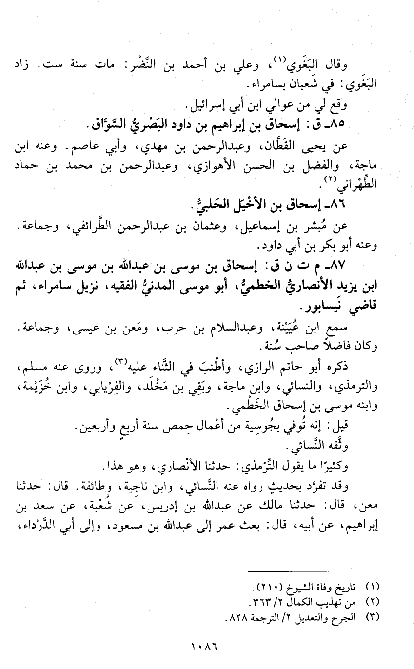 85 - ق: إسحاق بن إبراهيم بن داود البَصْريُّ السَّوّاق. [الوفاة: 241 - 250 ه]