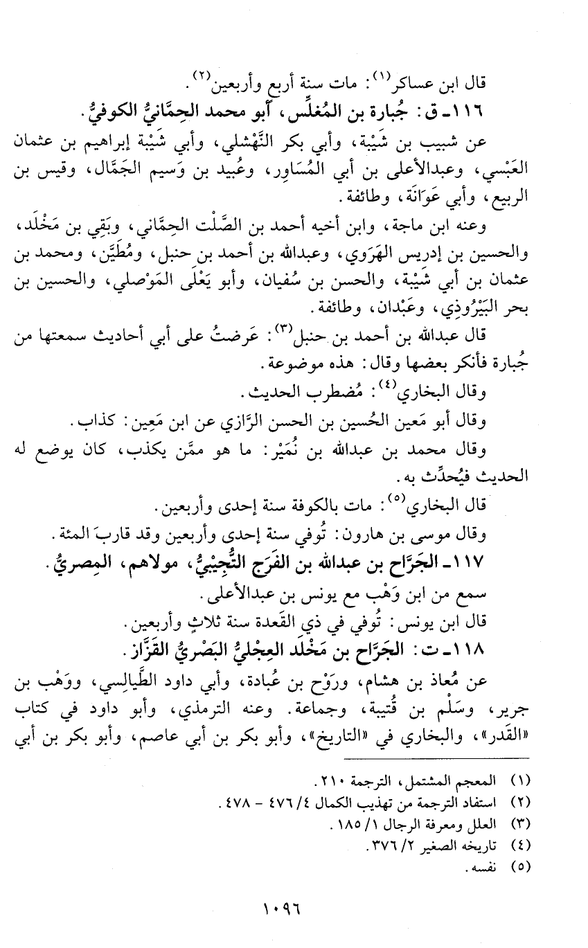 116 - ق: جُبارة بن المغلس، أبو محمد الحِمّانيّ الكُوفيُّ. [الوفاة: 241 - 250 ه]