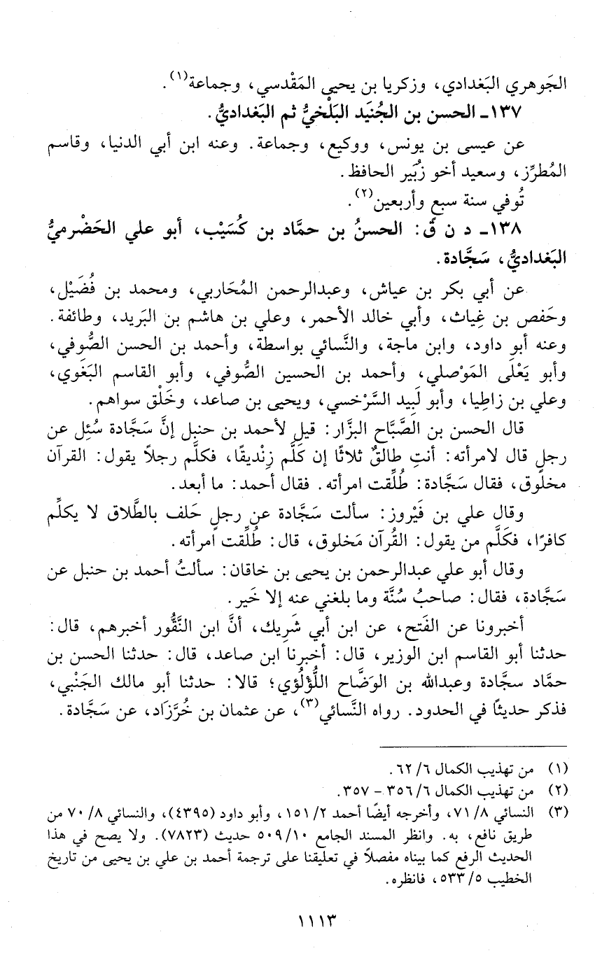 138 - د ن ق: الحسن بن حماد بن كسيب، أبو عليّ الحضرمي البَغْداديُّ، سجادة. [الوفاة: 241 - 250 ه]