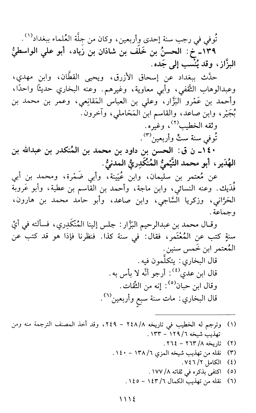 139 - خ: الحَسَن بن خَلَف بن شاذان بن زياد، أبو علي الواسطي البزاز، وقد ينسب إلى جدَّه. [الوفاة: 241 - 250 ه]