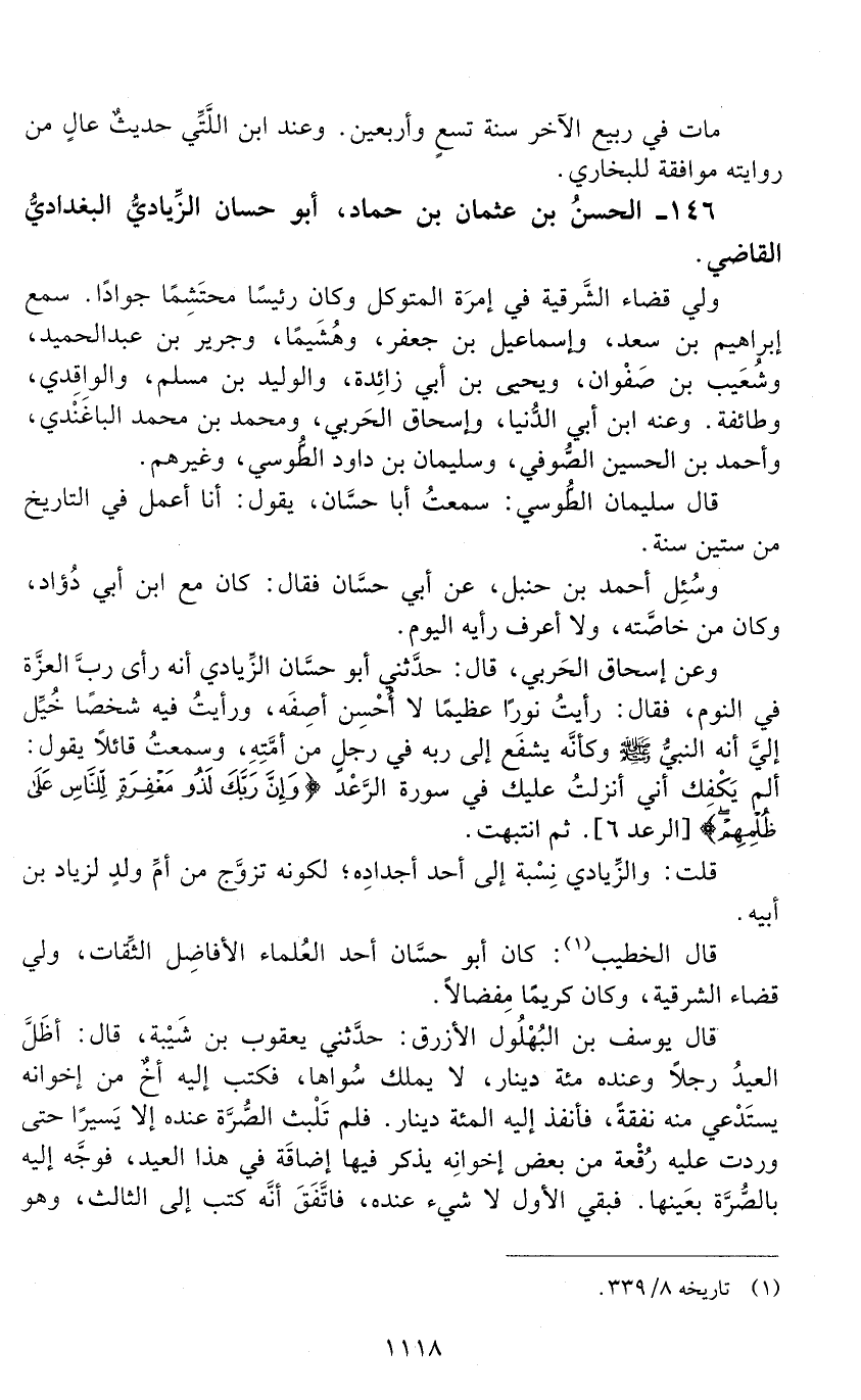 146 - الحَسَن بن عثمان بن حمّاد، أبو حسان الزّياديّ البَغْداديُّ القاضي. [الوفاة: 241 - 250 ه]